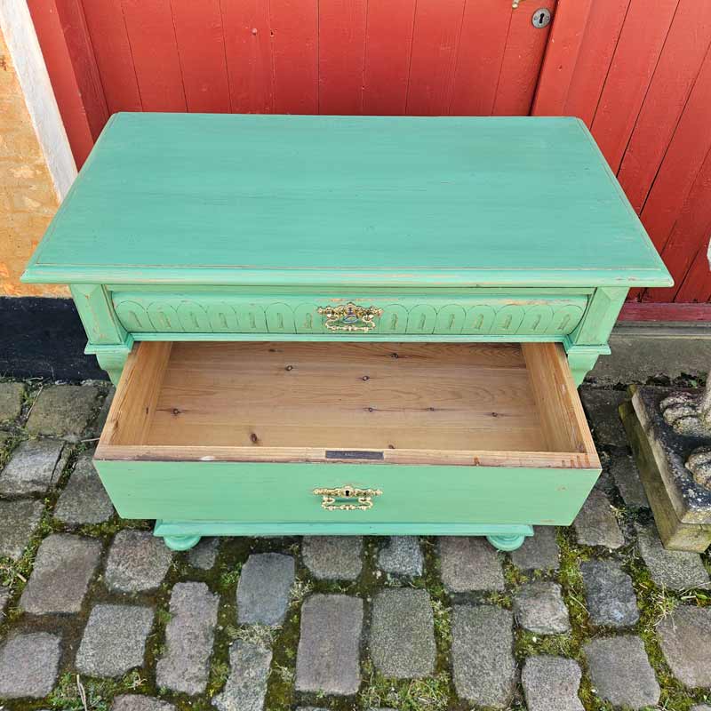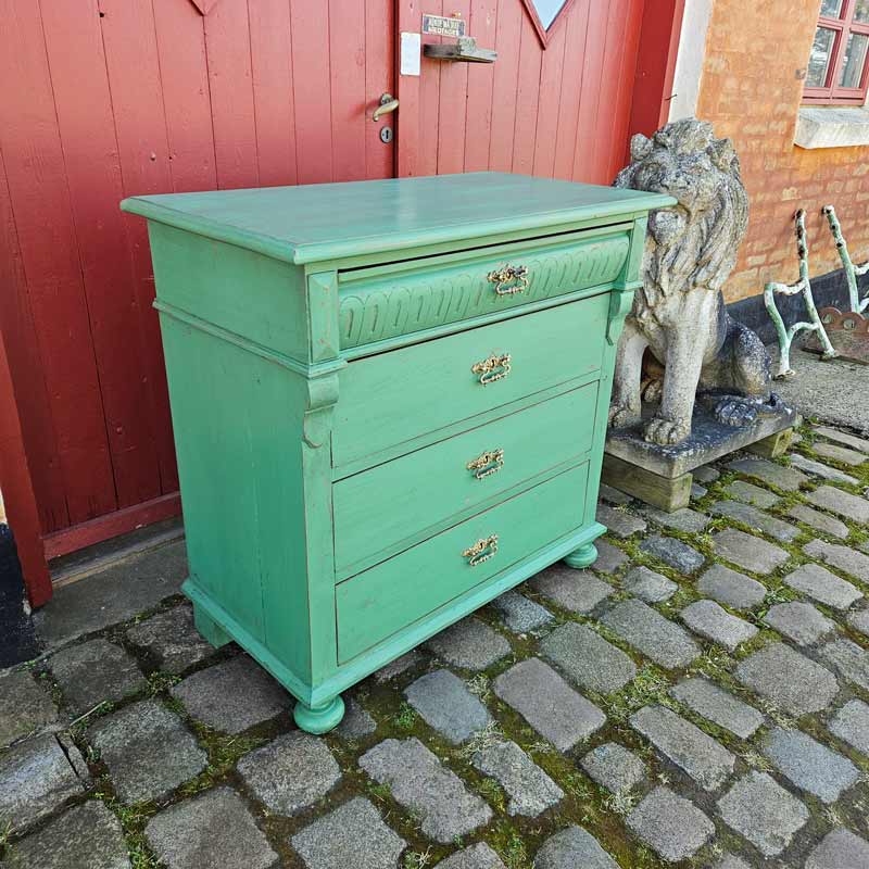 Antik, grønmalet kommode med 4 skuffer. Fra omkring år 1920. (kommode 18)